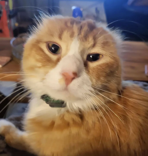 When we first meet him in the photos, this orange-and-white cat looks fragile, tired, and defeated by life. His ears are scarred, his eyes heavy with exhaustion, and his body carries the weight of hardship. He was just another forgotten soul on the streets, surviving day by day, until compassion found him.