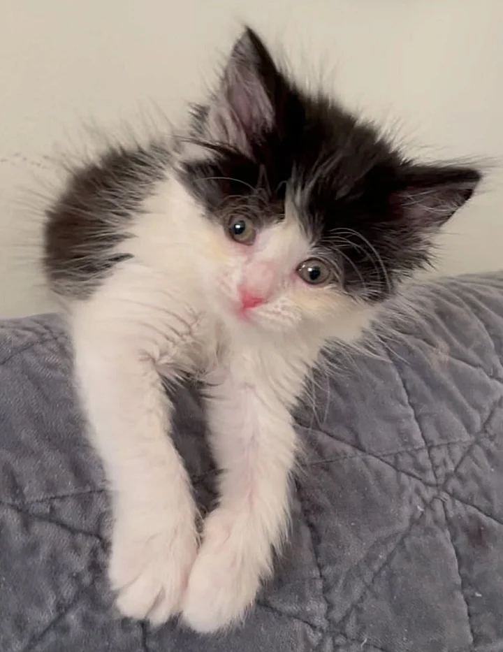 They quickly realized the new kitten was a few weeks older and not from the same litter. She had a bad cold and was skinny under her fluffy coat.